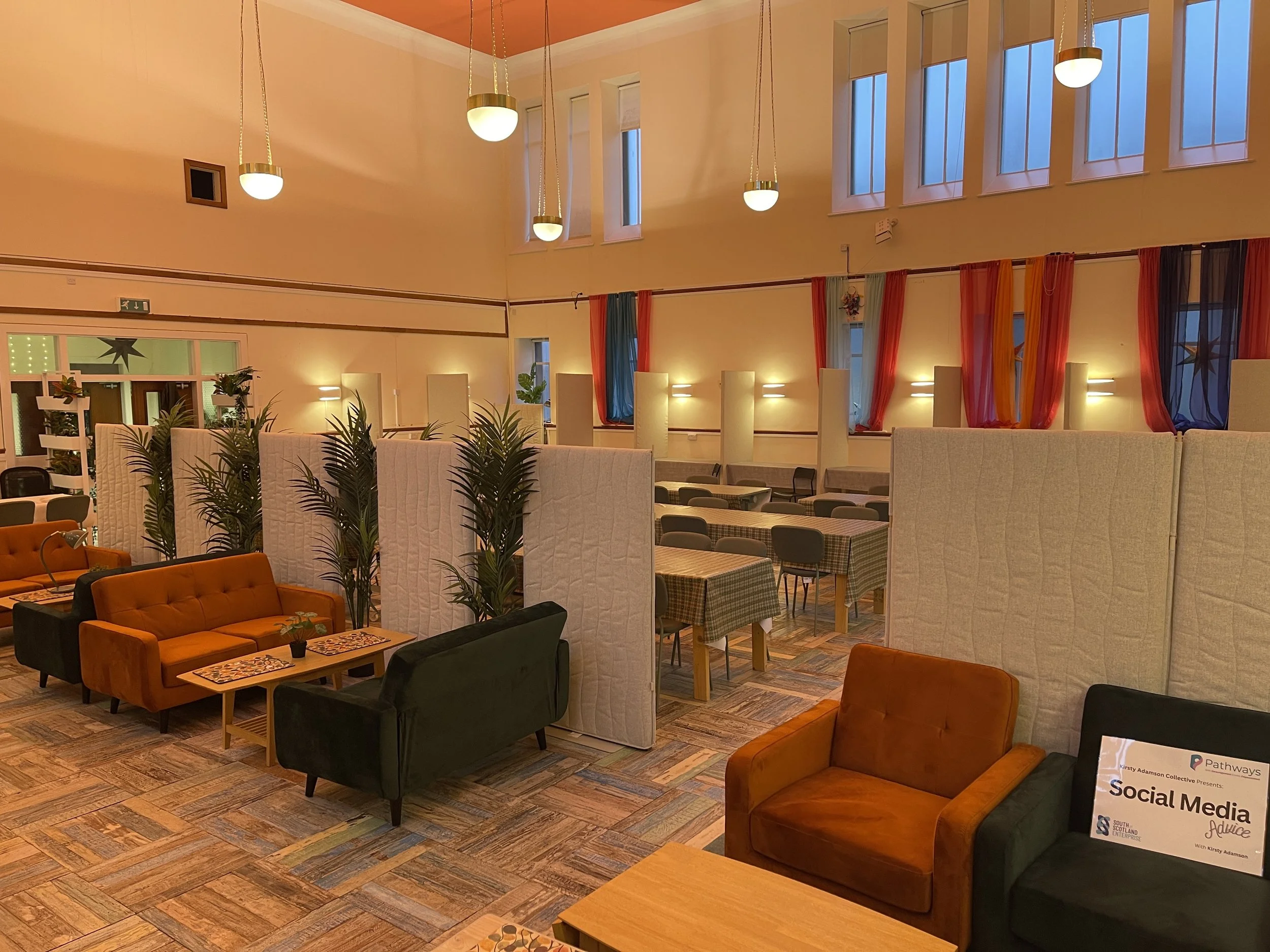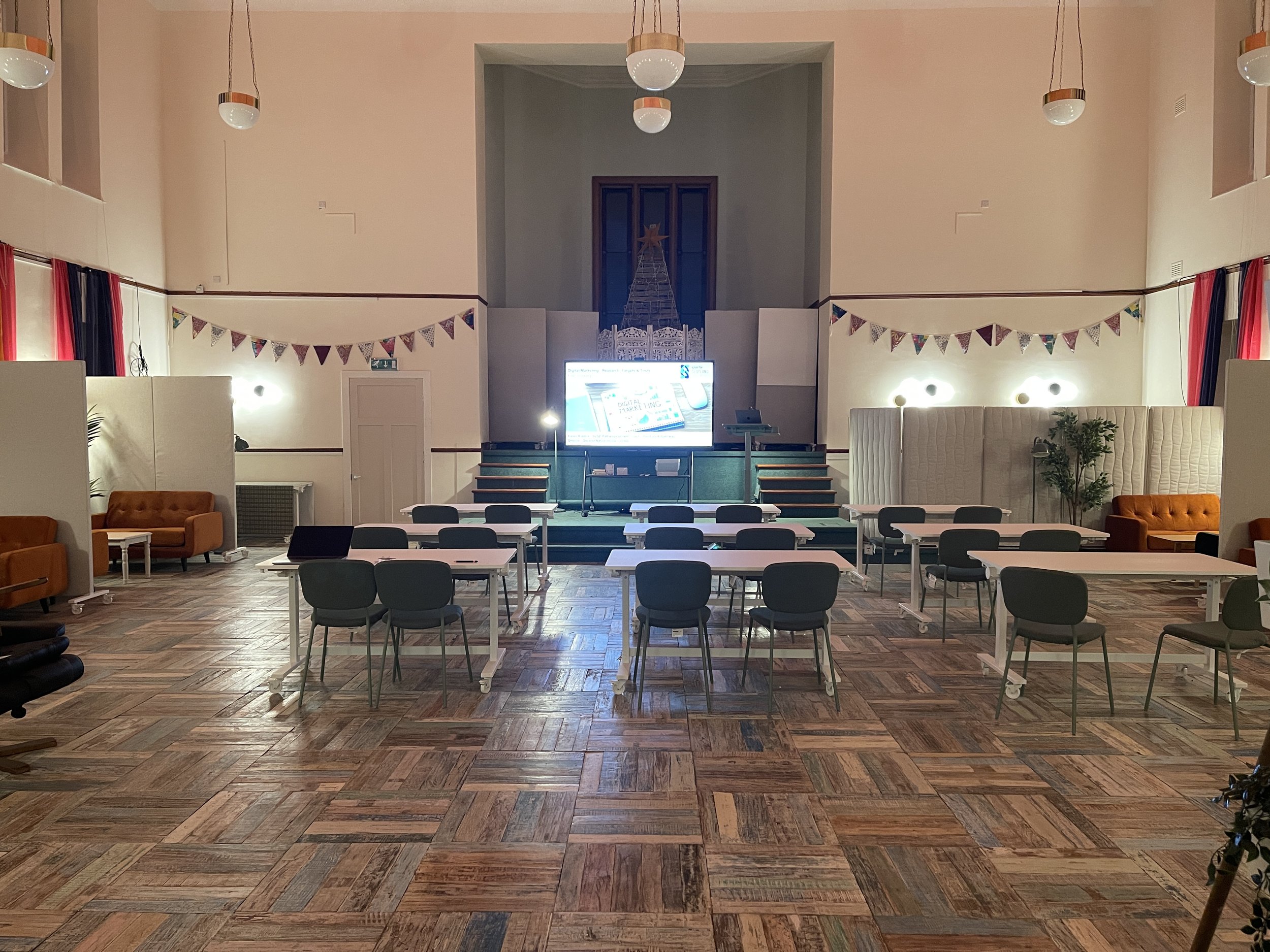The main hall is a versatile, multi-use space designed to support a wide range of business activity.