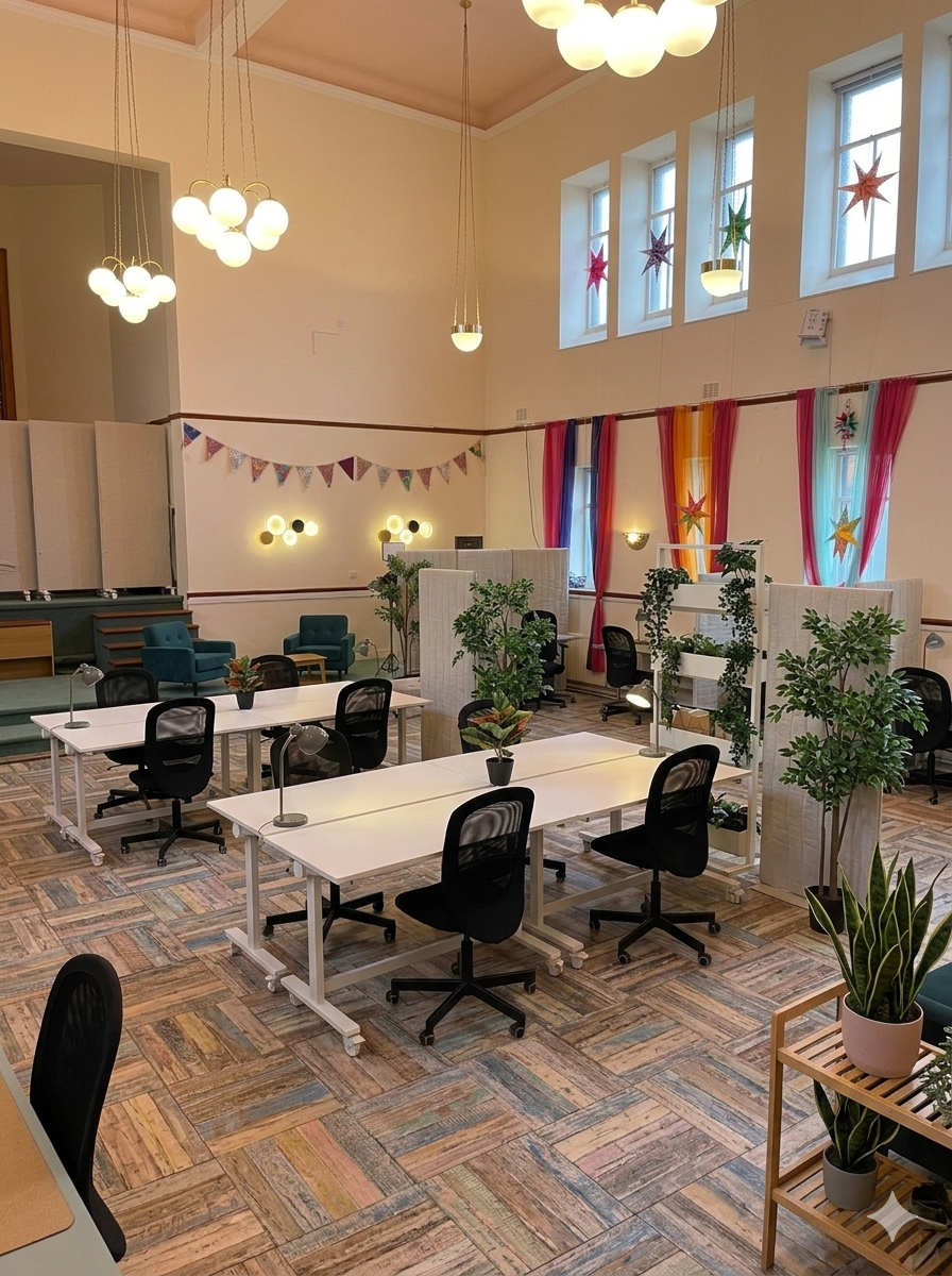 Rather than being fixed to one purpose, the space is intentionally laid out to accommodate different ways of working throughout the day.